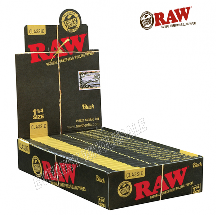 Raw Tobacco Rolling Paper Classic 1 1/4 * Black * 24 ct