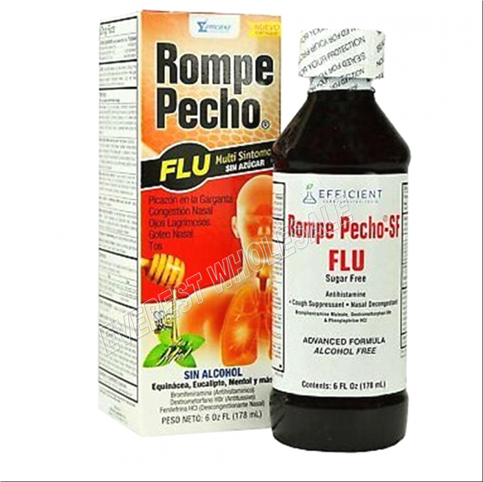 4. Rompe Pecho SF-FLU contains active ingredients such as brompheniramine, dextromethorphan and phenylephrine, combined with natural herbal extracts menthol, echinacea and more.