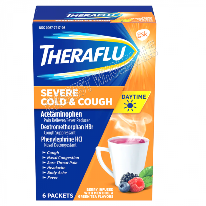 - Theraflu Daytime relieves headache, sore throat, & cough